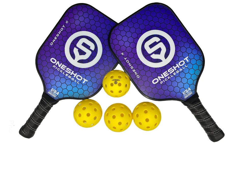 The OneShot Pickleball Flipshot Series is the first paddle of its kind as it offers 2-sides textured faces! 1 side of the paddle is Fiberglass (Power) and the opposite side is Carbon Fiber (Control).